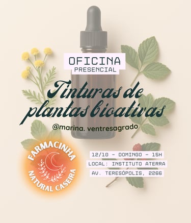 Nesta oficina presencial, você vai aprender na prática a preparar sua própria farmacinha natural caseira, explorando os usos e benefícios das plantas, e levando para casa não apenas seus preparos, mas também conhecimento para seguir aplicando no dia a dia.